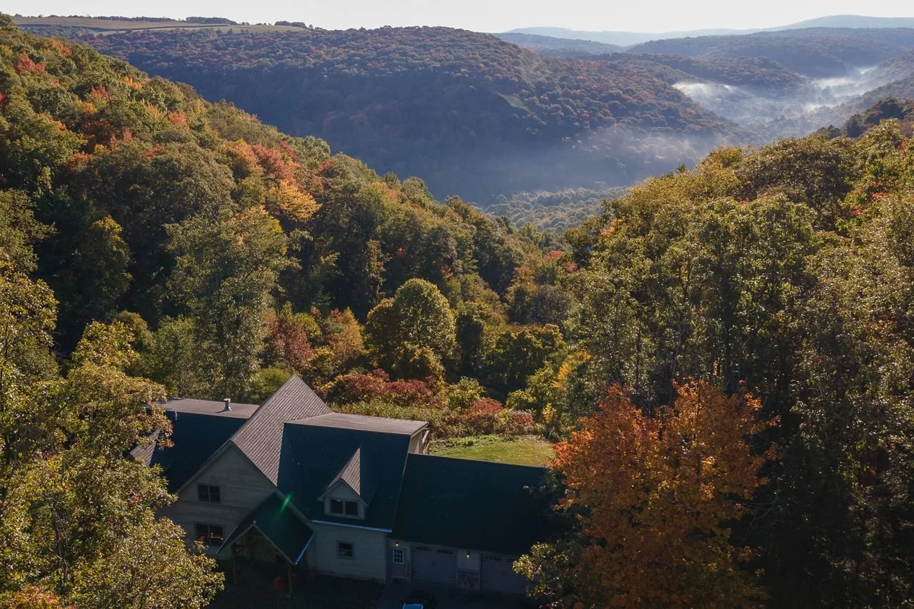 Both front and back porches are sized for socializing. The front overlooks the pond and stream, and is filled with lounge chairs and a dining table. The back porch overlooks fields and forest, and is made for grilling with plenty of seating and a dining table.
